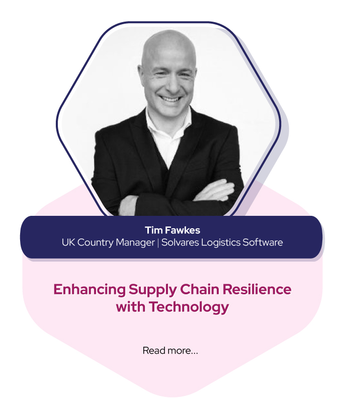 Tim has over 30 years’ experience with the logistics industry, having worked for various 3PLs during the 90s, where he encountered a number of transport management software solutions. Tim cofounded 3T Logistics in 2000. Formed as a 4PL and technology business, 3T developed software, taking advantage of emerging technologies to automate and optimise the end-to-end transport management process. Tim joined Solvares in 2024 as the UK Country Manager, responsible for promoting Solvares’ state of the art Transport Management solutions in the UK market. Solvares solutions help companies manage transport more efficiently, reduce transport cost and CO2 while improving visibility and control.
